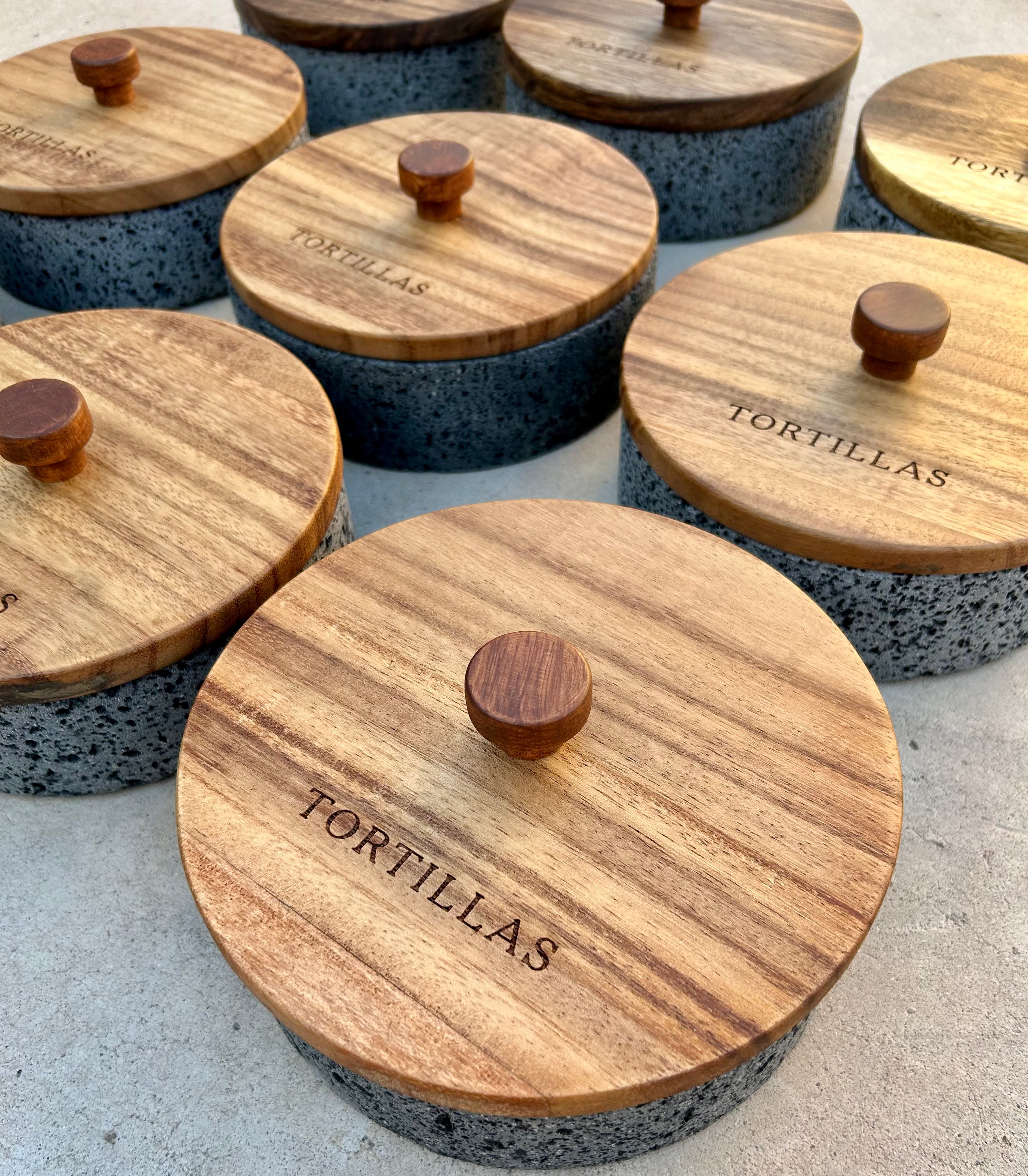 • Material: Piedra volcánica y tapa de madera